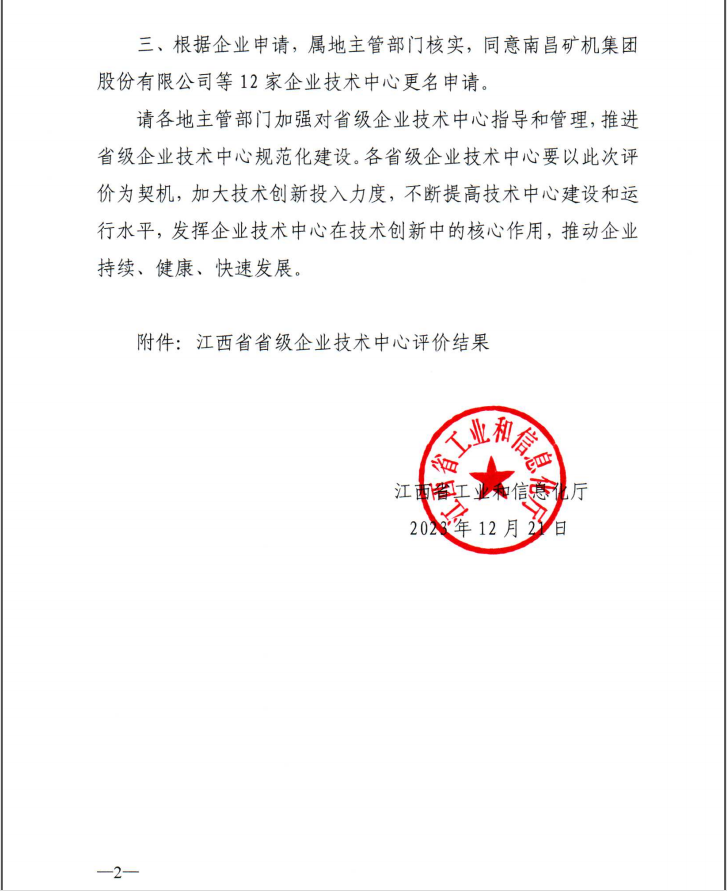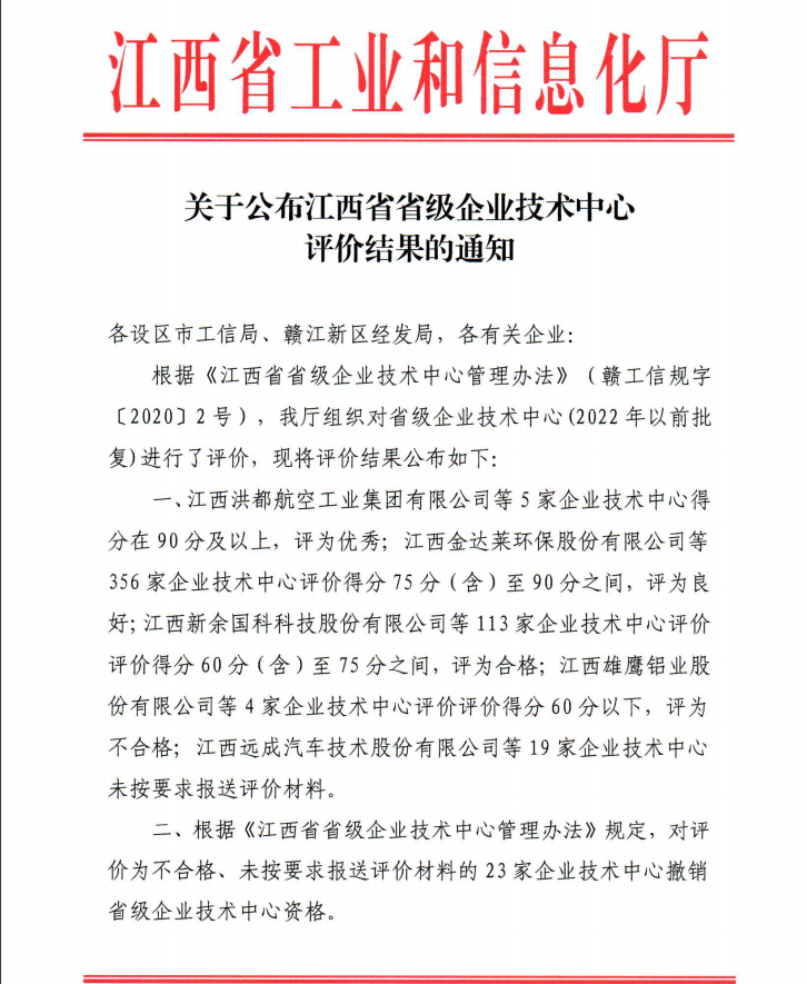 2023.12股份公司被评为“省级企业技术中心”的批文